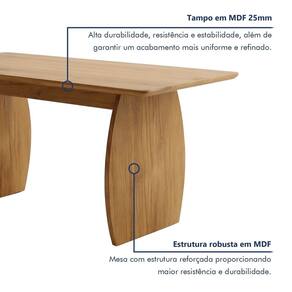 Imponente e elegante, nossa mesa de jantar retangular é ideal para quem busca sofisticação e durabilidade no dia a dia. O tampo robusto com bordas chanfradas valoriza o acabamento e traz um visual moderno ao ambiente. O acabamento na cor cinamomo traz aconchego e sofisticação, combinando facilmente com diferentes estilos de cadeiras e ambientes. O tampo garante toque natural, fácil manutenção e excelente durabilidade para o uso diário. Perfeita para reunir a família e receber convidados com conforto e estilo.