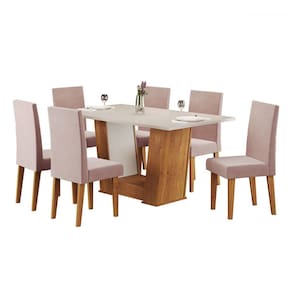 O(a) Mesa de Jantar 6 Lugares Venus Marrom/Blonde/Veludo/Rosa - Viero Móveis é produzido em MDF e MDP na escala de brilho Semi-Brilho, e possui um grau de dificuldade de montagem: Médio.