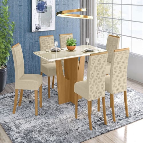 O(a) Mesa de Jantar 6 Lugares Vértice/Vita com Vidro Natural/Off White/Linho - Henn é produzido em MDF e MDP na escala de brilho Fosco, e possui um grau de dificuldade de montagem: Médio.