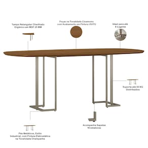 MDFA imponência do design industrial em escala generosa. Com 200cm, a Mesa de Jantar Alina acomoda até oito pessoas com a atitude que define a linha Alina. Os pés metálicos sustentam com robustez, enquanto o tampo orgânico em MDF chanfrado traz a suavidade das curvas. Sem o vidro, o acabamento amadeirado valoriza a beleza natural da peça. Enfim, essa mesa de jantar 8 lugares é para grandes momentos que merecem estilo e personalidade incomparáveis. Garanta já a sua e surpreenda-se!