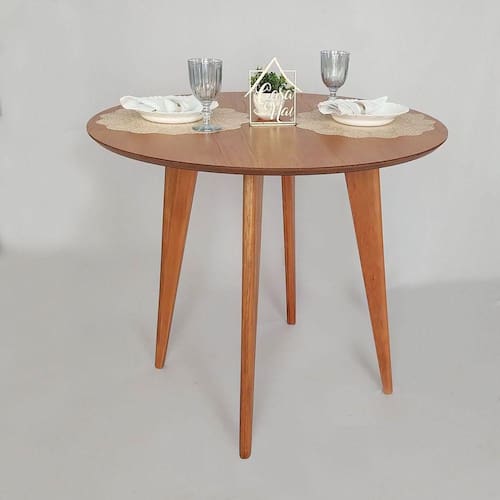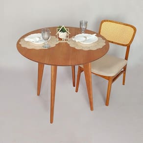 Nossa Mesa de Jantar Slim é uma mesa 4 lugares, tem um Acabamento de Alto Nível com uma lamina de madeira de Cinamomo para deixar com aquele charme. Ela é versátil e moderna vai fazer toda diferença na sua Sala de jantar! FOTO REAL do produto, tirada em nosso estúdio. Medidas Altura: 78 cm Diâmetro: 90 cm Cor: Lamina de Madeira Cinamomo Mel Pés: Madeira Diferencial Selo de Qualidade CASA UAI Lamina de Madeira Cinamomo Tampo em MDF em alta qualidade Borda Chanfrada 45° Acabamento em Verniz PU Fosco Acabamento em Verniz Acrilico ( Alta resistência ) Pés em Madeira tratada e seca em estufa Acabamento nos pés em Verniz alta resistência MONTAGEM O produto vai desmontado, porém a montagem é bem simples, basta parafusar os pés no tampo e pronto, seu produto estará pronto para uso Acabamento: Verniz Acabamento do Tampo: Verniz Ambiente Principal: Sala de Jantar codigo_ean: 7908308793187 Complexidade da Montagem: Baixa: pode ser montado por uma pessoa sozinha Cor: Madeira Cor do Produto: Madeira Design da Base: 4 Pés Escala de Brilho: Fosco Espessura do Tampo: 18 mm Extensível: Não Itens Inclusos: 1 Mesa, Kit Ferragens e Manual de Montagem Manual de Montagem e Instalação: https://product-hub-prd.madeiramadeira.com.br/841485/documents/90a1d7a5-6378-46a2-928b-0525bcba98c6montagemmesaslimredondapdf.pdf Material do Tampo: MDF Material Principal: Madeira Maciça Medida do Tampo (L x C x E): 90x90x78 Necessita Montagem: Sim Origem do Produto: Nacional Peso: 19,734 kg Recomendações de Uso, Manutenção e Limpeza: Pano umedecido para limpeza Sistema de Montagem: Chave de Fenda Suporta Até (kg): 30 kg Tipo de Madeira Maciça: Eucalipto Marca: Casa Uai