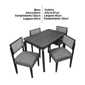 Mesa de Jantar Alegra 120x80 SEM Vidro 4 Cadeiras Grecia A Mesa de Jantar Alegra 120x80 SEM Vidro 4 Cadeiras Grecia possui um design moderno e é ideal para acomodar confortavelmente até 4 pessoas, proporcionando momentos agradáveis. Com um estofado confortável em seu assento e estrutura resistente, a Cadeira Grecia oferece o suporte necessário para longas conversas à mesa. Além disso, seu design elegante confere um toque de sofisticação ao ambiente. A Estrela Móveis orgulhosamente traz este conjunto para os lares cariocas, priorizando sempre a qualidade e o design inovador como parte de nossa missão. Nosso compromisso é fornecer móveis acessíveis e que contribuam para o bem-estar das famílias da cidade maravilhosa.\nMEDIDAS\nAltura (Mesa) 80 cm\nComprimento (Mesa) 120 cm\nLargura (Mesa) 80 cm\nAltura (Cadeira) 87 cm\nComprimento (Cadeira) 52 cm\nLargura (Cadeira) 45 cm\nCARACTERÍSTICAS\nFabricante JCM / HR\nModelo Mesa de Jantar Alegra 120x80 SEM Vidro\nGarantia 3 meses\nTipo de Produto Mesa de Jantar\nAmbiente Sala de Jantar\nEstrutura MDF/MDP\nEstilo Moderno\nPossui Vidro Não\nEspessura Vidro Não Possui\nAcabamento Pintura UV\nAssento Espuma de Alta Densidade\nEncosto Tela Sintética\nRevestimento Tecido Linho\nNecessita Montagem Sim\nAcompanha Manual de Instalação Sim\nINFORMAÇÕES IMPORTANTES\nObjetos decorativos que porventura apareçam na foto, não acompanham o produto. Não nos responsabilizamos pela montagem/instalação dos produtos.\nMontagens, desmontagens e instalações são responsabilidades do cliente. Indicamos que contrate uma empresa de montagem ou um montador de sua confiança.\nAlém disso, favor verificar se os pés e acessórios estão dentro do forro inferior do produto. Em suma, todas as informações divulgadas sobre o produto são de responsabilidade do Fabricante.\nAs cores do produto podem variar de acordo com o seu monitor, a iluminação do ambiente em que você está e até mesmo a sua percepção visual. Além da cor, pequenos detalhes e acabamentos podem não ficar evidentes na foto, por isso as imagens são meramente ilustrativas.