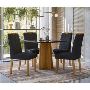 Mesa de Jantar Ambiente Anitta 90x90 cm com Vidro Ype Preto e 4 Cadeiras Sarah Veludo Preto New Ceval