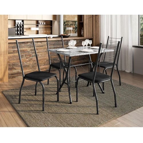 Mesa de Jantar Bruna 100x60 cm com Granito Ocre Itabira com 4 Cadeiras 063 Preto – Artefamol