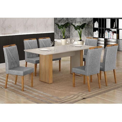 Mesa de Jantar Ambiente Júlia 180x90cm Cinamomo Off White com 6 Cadeiras Lara Linho Prata - Valdemóveis