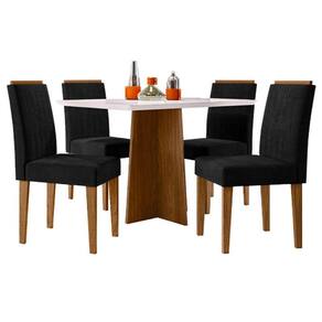 Mesa de Jantar Anitta 120x80 cm com Vidro Ype Off White e 4 Cadeiras Ana Ype Veludo Preto – New Ceval