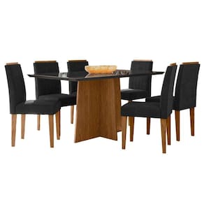 Mesa de Jantar Anitta 160x90 cm com Vidro Ype Preto e 6 Cadeiras Ana Ype Veludo Preto – New Ceval