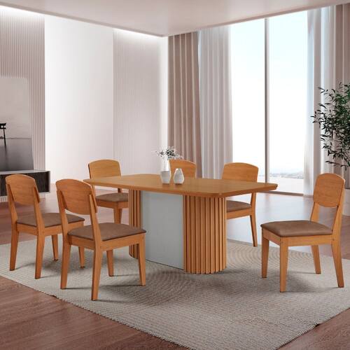 Mesa de Jantar Aspen 180cm Tampo MDF Laminado com 6 Cadeiras Copper Moderna Mobília - Marrom