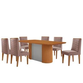 O conjunto combina design moderno, sofisticação e funcionalidade. A Mesa Aspen se destaca pelo visual imponente, com tampo em MDF e canto copo, além da base ripada que confere textura e personalidade ao ambiente. Ideal para quem busca um estilo clean e contemporâneo, ela transforma qualquer espaço com leveza e elegância.