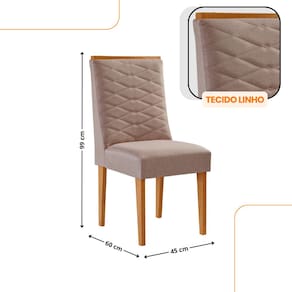 As cadeiras Safira, produzidas em MDF, são totalmente estofadas e oferecem excelente conforto. Seu grande diferencial está nos elegantes bordados, presentes tanto na parte frontal quanto na parte traseira do encosto, que agregam charme e sofisticação ao design. Além disso, as alças na parte superior do encosto facilitam o manuseio no dia a dia, tornando-as práticas e funcionais.