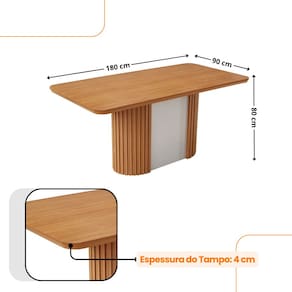 Dimensões da Mesa: Altura: 80 cm Largura: 180 cm Profundidade: 90 cm