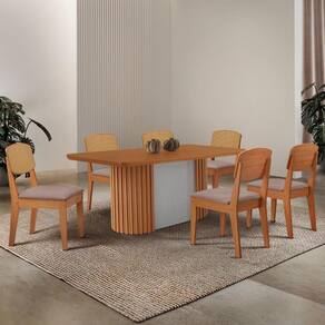 Mesa De Jantar Aspen 180cm Tampo Mdf Laminado Copper Premium Linho Capuccino / /off White Conjunto Mesa Aspen e Cadeira Copper Premium A Mesa Aspen traz um design moderno e imponente, com tampo em MDF e canto copo. Sua base ripada em MDF e o grande destaque da peca, trazendo uma textura cheia de personalidade. A Mesa Aspen transforma qualquer ambiente com sua presenca unica e atual o modelo perfeito para quem busca um design clean e sofisticado, trazendo leveza ao seu ambiente.