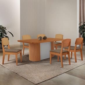A Cadeira Copper Premium combina design contemporaneo e conforto, com encosto em MDF moldado que proporciona suporte ergonomico ideal. Seu estofado macio garante um assento aconchegante, enquanto o acabamento refinado e os detalhes sofisticados no encosto, que imitam rattan, valorizam seu visual, tornando-a perfeita para ambientes modernos e elegantes.
