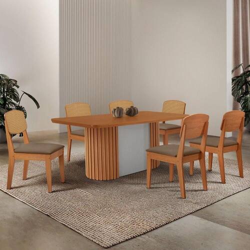 Mesa De Jantar Aspen 180cm Tampo Mdf Laminado Copper Premium Veludo Capuccino//off White