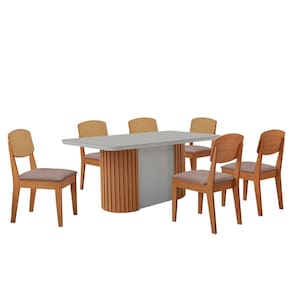 Mesa de Jantar Aspen 180cm Tampo MDF Vidro com 6 Cadeiras Copper Premium Moderna Mobília - Bege Médio