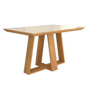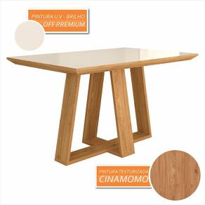 - Acabamento: Pintura UV Texturizada - Material da Base: MDF 25mm - Material do Tampo: MDF/MDP 15mm - Tonalidade da Mesa: Cinamomo/Off Premium - NÃO possui vidro - NÃO possui cadeiras
