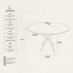 Garantia: 90 dias contra defeitos de fabricação, oferecendo segurança na compra. Acabamento: PU Acabamento da Base: Verniz Acabamento do Tampo: PU Ambiente Principal: Sala de Jantar Atóxico: Sim codigo_ean: 7900288126672 Complexidade da Montagem: Baixa: pode ser montado por uma pessoa sozinha Cor: Cinamomo Cor do Produto: Cinamomo Dobrável: Não Escala de Brilho: Semi-Brilho Espessura do Tampo: 18 mm Extensível: Não Itens Inclusos: 1 Mesa Manual de Montagem e Instalação: https://product-hub-prd.madeiramadeira.com.br/981629/documents/e610f700-03a2-47bf-bd2a-c3a84ba6de4af2582996491417338596165941.pdf Marca: Árvore de Minas Material da Base: Madeira Maciça Material do Tampo: Madeira Maciça Material Principal: Madeira Maciça Medida da Base (A x L x P): 75,50 x 120 x 120 Medida da Mesa (A x L x P): 78 x 120 x 120 Medida do Tampo (L x C x E): 120 x 120 x 1,8 Necessita Montagem: Sim Origem do Produto: Nacional Peso: 35,3 kg Possui Portas: Não Possui prateleira: Não Possui Rodízio: Não Possui Suporte Giratório: Não Possui Vidro: Não Recomendações de Uso, Manutenção e Limpeza: Utilizar pano umido, não utilizar liquidos abrasivos Sistema de Montagem: Fixação de Parafusos Suporta Até (kg): 120 kg Tipo de Madeira Maciça: Eucalipto Tipo de Madeira Maciça da Base: Tauari Tipo de Madeira Maciça do Tampo: Tauari