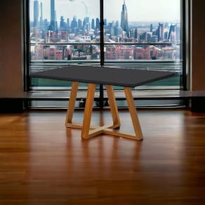 Mesa com Design moderno, conferindo beleza, elegância e durabilidade ao produto, a base é produzida 100% em MADEIRA MACIÇA certificada e com base em reflorestamento consciente. O acabamento da base de madeira é feito com de alta qualidade. O tampo em MDF com 38 mm de espessura (20 mm e encabeçamento 15 mm) com as bordas chanfradas e cantos arredondados, permitindo um acabamento sofisticado e com total segurança. Sobre o tampo é colado vidro de 3 mm pintado na cor do produto.