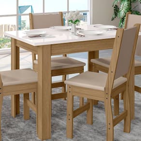 Mesa de Jantar Bellagio com 4 Cadeiras Poliman A Mesa de Jantar Bellagio com 4 Cadeiras Poliman é a peça perfeita para a sua sala de jantar. Compacta, elegante e cheia de estilo, essa mesa vai dar um toque de sofisticação ao seu lar doce lar. E o melhor de tudo: vem com quatro cadeiras super confortáveis para acomodar sua família e amigos com muito charme. Feita com materiais de alta qualidade, a Mesa de Jantar Bellagio com 4 Cadeiras Poliman é resistente e durável, garantindo que você possa desfrutar de suas refeições por anos e anos. Com um design moderno e clean, essa mesa vai combinar com qualquer estilo de decoração. E as cadeiras? Confortáveis e com um toque de elegância que vai deixar todo mundo impressionado. Prepare-se para as visitas, porque elas vão querer jantar na sua casa todos os dias! MEDIDAS Altura (Mesa) 80 cm Comprimento (Mesa) 108 cm Largura (Mesa) 68 cm Altura (Cadeira) 92 cm Comprimento (Cadeira) 39 cm Largura (Cadeira) 37 cm CARACTERÍSTICAS Fabricante Poliman Modelo Mesa de Jantar Bellagio Garantia 3 meses Tipo de Produto Mesa de Jantar Ambiente Sala de Jantar Estrutura MDP Estilo Moderno Possui Vidro Não Espessura Vidro Não Possui Acabamento Pintura UV Preenchimento Assento Espuma D11 Necessita Montagem Sim Acompanha Manual de Instalação Sim INFORMAÇÕES IMPORTANTES Objetos decorativos que porventura apareçam na foto, não acompanham o produto. Não nos responsabilizamos pela montagem/instalação dos produtos. Montagens, desmontagens e instalações são responsabilidades do cliente. Indicamos que contrate uma empresa de montagem ou um montador de sua confiança. Além disso, favor verificar se os pés e acessórios estão dentro do forro inferior do produto. Em suma, todas as informações divulgadas sobre o produto são de responsabilidade do Fabricante. As cores do produto podem variar de acordo com o seu monitor, a iluminação do ambiente em que você está e até mesmo a sua percepção visual. Além da cor, pequenos detalhes e acabamentos podem não ficar evidentes na foto, por isso as imagens são meramente ilustrativas.