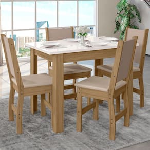 Conjunto Mesa de Jantar Retangular 4 lugares Bellagio com 4 cadeiras Clara da Poliman Móveis foi desenvolvido para trazer ainda mais beleza a sua cozinha o design aplicado junto a ergonomia do produto trará momentos agradáveis em família e amigos. A mesa possui tampo retangular 108cmx68cm em MDP com espessura de 25mm e acabamento em pintura UV garantindo qualidade, 4 pés que trazem mais robustez e sapatas plásticas para melhor durabilidade e estabilidade. As 04 cadeiras Clara são em MDF/MDP 15 e 18mm com acabamento nas bordas em PS, travas para reforço da sustentação, assento revestido em courvin de alta resistência com manta de proteção interna de fácil limpeza. Produto disponível em padrões de cor fosco para perfeita combinação nos mais variados ambientes. Qualidade que só a Poliman oferece em seus produtos. Informações adicionais: peso suportado da mesa: 50kg peso suportado da cadeira: 100kg densidade do assento da cadeira: D11; altura do chão até o assento: 47cm.