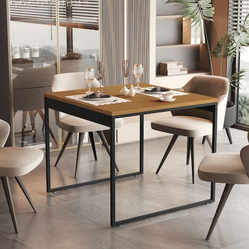 Mesa de Jantar Bréscia 100x75cm em Aço Industrial Tampo MDF Reforçado - Marrom
