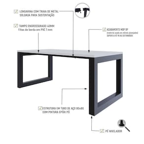 Sobre o ProdutoMesa de Jantar Bronx 180x90x77cm BRMJ9180 çoDescrição do Produto:A mesa de jantar Bronx BRMJ9180 é a expressão perfeita da fusão entre elegância e robustez, ideal para ambientes modernos e contemporâneos. Com dimensões de 1,80x0,90m, esta peça impressiona pela sua presença marcante. O tampo engrossurado de 40mm, finalizado com fitas de PVC de 01mm, oferece uma superfície resistente e de excelente acabamento. A estrutura em tubos de aço 80x80mm, complementada por longarinas produzidas com tubos 30x50mm, garante estabilidade e durabilidade, enquanto o design minimalista proporciona um toque moderno e sofisticado a qualquer espaç linha City_Scape captura a sofisticação e o estilo das grandes metrópoles, trazendo móveis inspirados em bairros e cidades icônicas. Com design moderno e cosmopolita, cada peça reflete a elegância urbana, conectando ambientes contemporâneos à atmosfera vibrante das cidades ao redor do mundo. Os tampos engrossurados em MDP BP recobertos com fitas de borda em PVC de 01mm, garantem resistência e durabilidade com um acabamento refinado. As estruturas em aço com soldas a laser e suavizadas, possuem acabamento em pintura epóxi que confere solidez e um visual moderno, garantindo a longevidade e a robustez das peç Inclusos:1 Mesa de JantarDimensões dos Produtos:Mesa de Jantar Bronx 180x90x77cm BRMJ9180 ço: 180 x 90 x 77 cmInformações Logísticas (Comp. X Prof. X Alt.) 188 x 103,5 x 6 cm - Peso: 29,31 94 x 82 x 20 cm - Peso: 14,19 KgPeso Total: 43,5 KgObservações:Não acompanha acessórios decorativos. Imagens meramente ilustrativas.Informações Técnicas / Características:- Cor do Produto: ço- Cor do Predominante: Revestido- Marca: Metalig- Modelo: BRMJ9180- Linha: City_Scape- Material: Mdp- Material da Estrutura / Pés: Aço- Acabamento: BP- Escala de Brilho: Fosco- Fita de Borda: Pvc - Possui Gavetas: Não - Possui Pés: 2- Pés Niveladores: Sim - Acabamento Estrutura: Epóxi-Pó- Formato: Retangular -Observações: Possui 02 Lomgarinas horizontais de aço.- Suporta Até (kg): 100kg- Comprimento: 180cm- Profundidade: 90cm- Altura: 77cm - Peso Lí.: 41,37Kg- Recomendações de Uso, Manutenção e Limpeza: Para a limpeza, utilize flanela seca ou pano macio levemente umedecido em água. Utilize um pano seco em seguida. Evite com produtos químicos (solventes, thinner, acetona, etc) e não utilize nenhum tipo de esponja de aço.- Necessita de Montagem: Sim / Acompanha Manual de Montagem- Complexidade da Montagem: Média: pode ser montado por mais de uma pessoa e/ou necessite de maior conhecimento para montagem.- Garantia: 01 ano Altura: 77 cm | Comprimento: 180 cm | Marca: Compace | Largura: 90 cm | Quantidade máxima de pedido: 1 | Modelo: BRMJ9180 | Necessita montagem: Sim | Quantidade de volumes: 2 | Material da estrutura: Aço | Profundidade: 90 cm | Produto: Mesa | Cômodo indicado: Escritórios | Cor: Multicolorido | Tonalidade: Multicolorido | Coleção: Industrial | Requer Baterias: Não | Certificação Externa: | Componentes inclusos: Manual de montagem e kit acessórios | Preço de tabela: | Fabricante: Compace | do Modelo: BRMJ9180 | de Caixas: 1 | de Itens: 1 | da Peça: BRMJ9180 Cor: Branco TX/