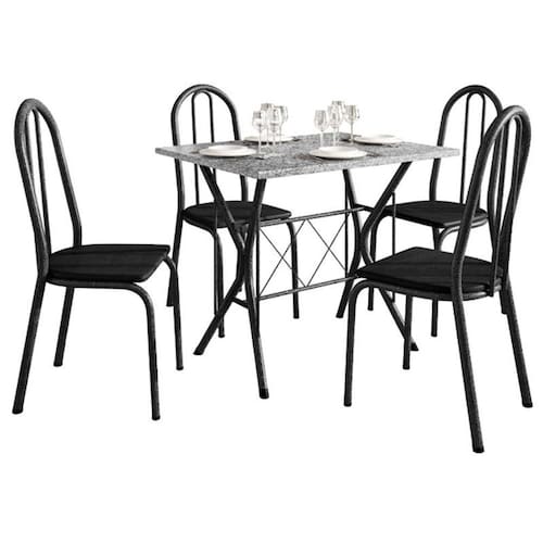 Mesa de Jantar Bruna 100x60 cm com 4 Cadeiras 050 Preto com Granito Ocre Itabira - Artefamol