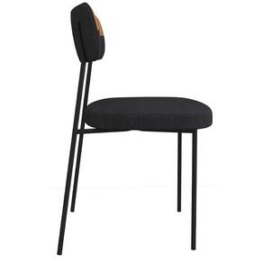 Encosto e assento estofados com espuma laminada, revestidos em Linho Grafite e Couríssimo Caramelo.