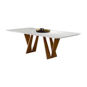 Mesa De Jantar Chile C03 180x90 Cm Cor Laca Off White/caramelo - Marrom
