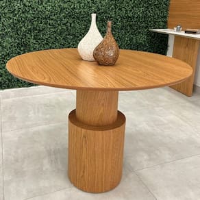 Mesa de Jantar Cilindro Spin Redonda 80 cm Tampo Freijó Base freijó