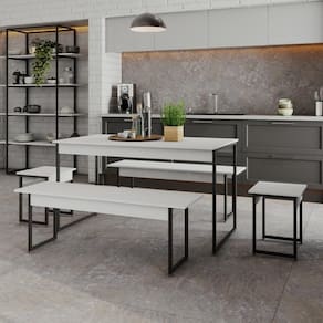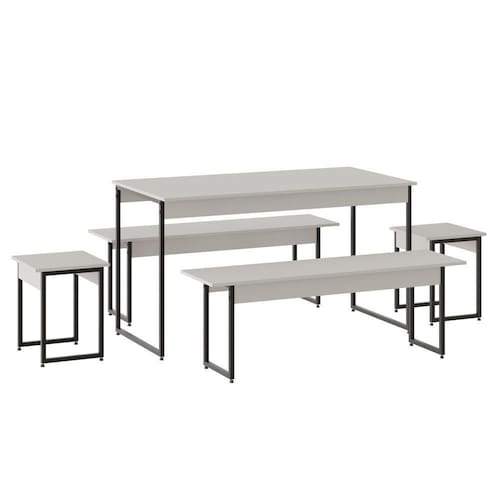 Sobre o ProdutoMesa de Jantar Tub C/02 Bancos e 02 Banquetas. Descrição do Produto:A Mesa de Jantar C/02 Bancos e 02 Banquetas Tub é um produto prático e versátil, que pode ser utilizado em diversos ambientes, como quarto e escritório, na sala, cozinha ou seu depó linha Tub traz móveis contemporâneos com estilo industrial, perfeitos para sua sala, cozinha ou área de lazer. Fabricado com estrutura em tubos de aço com pintura epóxi e MDP Perffect com Microban que inibe a proliferação de fungos e bactérias, além das fitas em PVC, conferindo muito mais qualidade ao seu mó Inclusos:1 Mesa de Jantar C/02 Bancos e 02 BanquetasDimensões dos Produtos:Mesa de Jantar Tub C/02 Bancos e 02 Banquetas Branco Chess / 135 x 70 x 74 cmInformações Logísticas (Comp. X Prof. X Alt.) 146 x 74 x 9 cm - Peso: 35,03 KgPeso Total: 35,03 KgObservações:Não acompanha acessórios decorativos. Imagens meramente ilustrativas.Informações Técnicas / Características:- Cor do Produto: Amadeirado / - Marca: Compace- Modelo: Linha: Tub- Material: Mdp- Material da Estrutura / Pés: Aço- Acabamento: Perffect Acetinado- Escala de Brilho: Fosco- Fita de Borda: Pvc - Possui Gavetas: Não - Possui Pés: 2- Pés Niveladores: Sim - Acabamento Estrutura: Epóxi-Pó Texturizado- Formato: Retangular -Observações: Suporte de peso do Banco: 200kg / Banqueta: 100kg- Suporta Até (kg): 90 kg- Comprimento: 135cm- Profundidade: 70cm- Altura: 74cm - Peso Lí.: 33,6Kg- Recomendações de Uso, Manutenção e Limpeza: Para a limpeza, utilize flanela seca ou pano macio levemente umedecido em água. Utilize um pano seco em seguida. Evite com produtos químicos (solventes, thinner, acetona, etc) e não utilize nenhum tipo de esponja de aço.- Necessita de Montagem: Sim / Acompanha Manual de Montagem- Complexidade da Montagem: Média: pode ser montado por mais de uma pessoa e/ou necessite de maior conhecimento para montagem.- Garantia: 6 meses