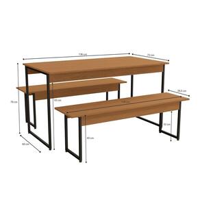 Para receber a família ou os amigos, a Mesa com 2 Bancos LI013 da Linha Industrial Kappesberg é perfeita. Para momentos de lazer especiais, são 76cm de altura e 1,36m de largura, e cada banco suporta até 210kg. Prática e versátil, a estrutura metálica é resistente, pintada com tinta epóxi na cor preto fosco, garantindo maior durabilidade contra a umidade e um acabamento lindo. Já o tampo e os bancos, em MDP de 15cm e acabamento touch na cor canela, com a textura dos veios da madeira, garantindo uma composição única e muito estilosa, completando seu ambiente para receber a todos com o máximo de conforto. Fácil de montar e ajustável em todos os pisos, a mesa e os dois bancos possuem sapatas reguláveis, garantindo mais estabilidade e um acabamento perfeito. Medida da Mesa (A x L x P): 76x136x72 Peso da Mesa: 18,9 kg Mesa suporta até: 60 kg Acabamento da Cadeira/Banco: Pintura Epóxi Acabamento da Mesa: Pintura Epóxi Acompanha Manual de Instalação: Sim Altura do Conjunto: 76 cm Ambiente Principal: Cozinha Cadeira/Banco Estofada: Não Cadeira/Banco estofada: Não Cadeira/Banco Suporta Até: 200.0000 Cadeira/Banco suporta até: 200 kg codigo_ean: 7900288245335 Complexidade da Montagem: Média: pode ser montado por mais de uma pessoa e/ou necessite de maior conhecimento para montagem Cor: Canela/Preto Fosco Cor do Produto: Canela/Preto Fosco Cor Secundária: Cinza De Canto (Canto Alemão): Não Escala de Brilho: Fosco Espessura do Tampo: 15 mm Estrutura do Assento: MDP Formato do Tampo: Retangular Itens Inclusos: 1 Mesa, 2 Bancos, Manual de Montagem e Kit Ferragens. Largura do Conjunto: 136 cm Linha ou Coleção: Crome Industrial Manual de Montagem e Instalação: https://product-hub-prd.madeiramadeira.com.br/140018205/documents/495c2069-ffed-481d-838f-57184afedf0b324355254451759145105379.pdf Marca: Kappesberg Material da Base da Mesa: Metal Material da Estrutura da Cadeira: Aço Material do Tampo: MDP Medida da Cadeira/Banco (A x L x P): 43x130x34,5 Medida do Tampo (L x C x E): 136x72x1,5 Mesa Extensível: Não Necessita Montagem: Sim Origem do Produto: Nacional Peso da Cadeira/Banco: 5,3 kg Possui Apoio Para os Pés: Não Profundidade do Conjunto: 72 cm Quantidade de Cadeiras: 2 Quantidade de Lugares: 04 Recomendações de Uso, Manutenção e Limpeza: Limpeza com pano macio levemente umedecido. Não utilizar produtos abrasivos. Sistema de Montagem: Parafuso Philips