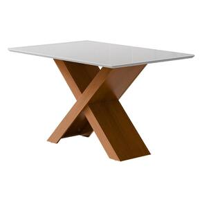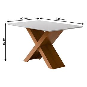 Diferenciais: - Produzida em MDF de 12/18mm: material que proporciona resistência e boa durabilidade para o uso diário. - Base estrutural em formato X: detalhe que reforça a estrutura da mesa e acrescenta um visual diferenciado ao design. - Tampo de 25mm com vidro (3mm): superfície reforçada que suporta até 30kg, garantindo mais segurança durante o uso. - Ideal para até 4 pessoas: tamanho pensado para proporcionar conforto nas refeições e melhor aproveitamento do espaço. - Design moderno: perfeito para compor salas de jantar com elegância e personalidade.