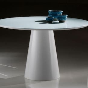 Estrutura em Fiberglass com pintura automotiva, contra tampo em MDF 18 mm e um tampo de 90 cm MDF Laminada em Madeira de 18mm + Vidro 6 mm. A mesa de Jantar Cone de alto padrão foi criada para possibilitar um design moderno com usabilidade para a sala de jantar, seu formato em cone mantém o espaçamento para as pernas dando conforto ao usá-la, é requintada se adequando a qualquer tipo de ambiente, clássico ou moderno, seu design é valorizado em decorações residenciais ou comerciais, elas são ideais para ambientes sofisticados. Ter um uma mesa Cone em casa ou no escritório é sinal de extremo bom gosto!