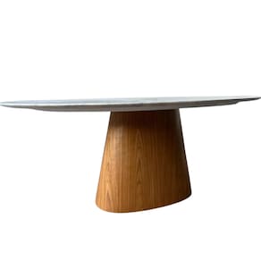 Mesa de Jantar Saarinen Oval, Tampo 120x80 cm em GRANITO MÁRMORE BRANCO EXTRA, com contra tampo em MDF, Base em Madeira Freijó