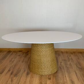 Mesa De Jantar Cone Oval 120x80 cm Tampo Laca Branca Base Fibra Natural