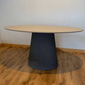 Mesa De Jantar Cone Oval 160x90 cm Tampo Carvalho Malva Base Corda Náutica Preta