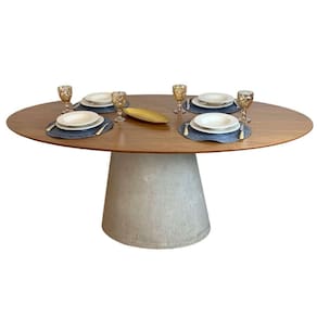 Mesa de Jantar Cone Oval 180x100 cm Tampo Freijó Base Concreto