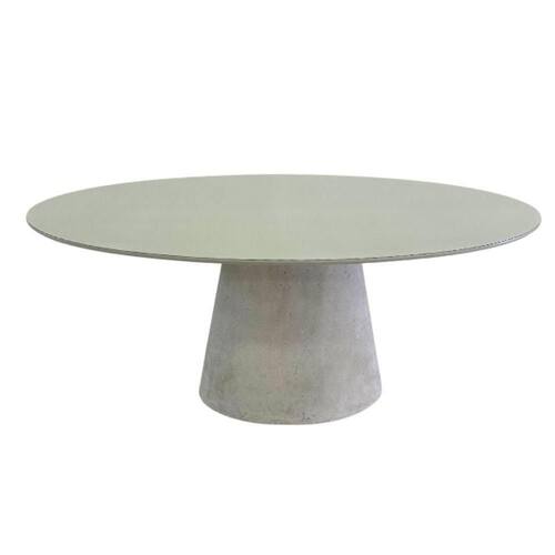 Mesa de Jantar Cone Oval 198x122 cm Tampo Off White + Vidro Base Concreto