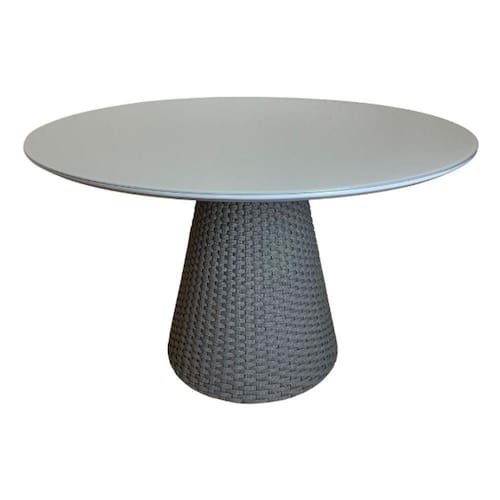 Mesa De Jantar Cone Redonda 130cm Tampo Laqueado Cinza + Vidro Base Corda Náutica Cinza