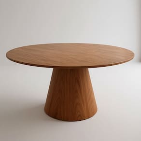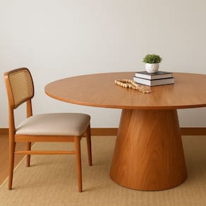( Mesa avulsa, não acompanha cadeiras. ) Nossa Mesa de Jantar Cone é uma mesa 4 lugares, tem um Acabamento de Alto Nível com uma lamina de madeira Cinamomo em sua Base e no tampo para deixar sua Sala de Jantar com aquele charme. Uma mesa redonda, versátio e moderna vai fazer toda diferença no seu ambiente!
