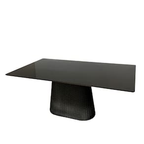 Mesa De Jantar Cone Retângular 244x137 cm Tampo Laca Preta Base Corda Náutica Preta