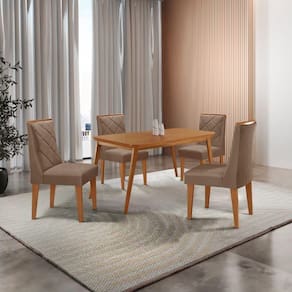 Mesa De Jantar Copper 120cm Tampo Mdf 4 Cadeiras Moderna Veludo Capuccino/naturalle/naturalle Conjunto Sala de Jantar Mesa Copper e Cadeira Isadora A Mesa Copper e uma peca que traz elegancia e sofisticacao para qualquer ambiente. Sua base em madeira oferece uma estrutura resistente e duravel, enquanto o tampo em MDF e acabamento canto copo garante um visual refinado. Com design sofisticado e estrutura solida, ela complementa o ambiente com um toque natural e acolhedor.