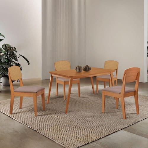 Mesa De Jantar Copper 120cm Tampo Mdf Laminado 4 Cadeiras Linho Capuccino// Conjunto Sala de Jantar Mesa Copper e Cadeira Copper Premium A Mesa Copper e uma peca que traz elegancia e sofisticacao para qualquer ambiente. Sua base em madeira oferece uma estrutura resistente e duravel, enquanto o tampo em MDF e acabamento canto copo garante um visual refinado. Com design sofisticado e estrutura solida, ela complementa o ambiente com um toque natural e acolhedor.