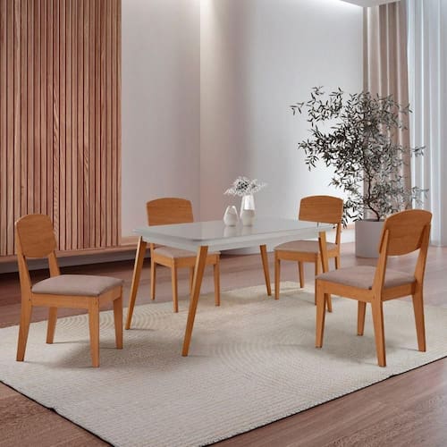 Mesa De Jantar Copper 120cm Tampo Mdf Vidro 4 Cad Copper Linho Capuccino/nat/off/serig. Off Conjunto Sala de Jantar Mesa Copper e Cadeira Copper A Mesa Copper e uma peca que traz elegancia e sofisticacao para qualquer ambiente. Sua base em madeira oferece uma estrutura resistente e duravel, enquanto o tampo em MDF com vidro e acabamento canto copo garante um visual refinado. Com design sofisticado e estrutura solida, ela complementa o ambiente com um toque natural e acolhedor.