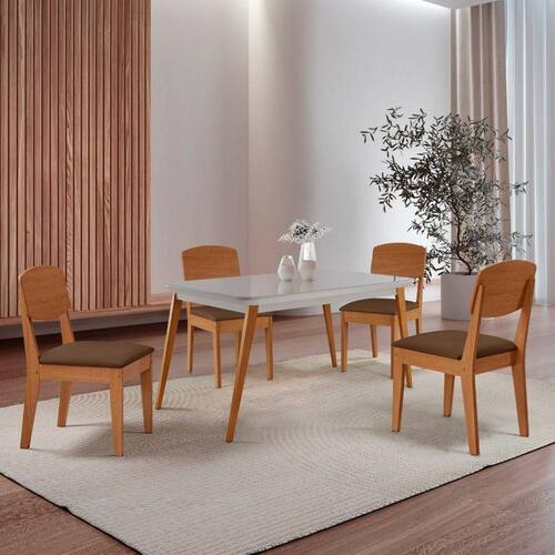Mesa De Jantar Copper 120cm Tampo Mdf Vidro 4 Cad Copper Veludo Marrom/nat/off/serig. Off Conjunto Sala de Jantar Mesa Copper e Cadeira Copper A Mesa Copper e uma peca que traz elegancia e sofisticacao para qualquer ambiente. Sua base em madeira oferece uma estrutura resistente e duravel, enquanto o tampo em MDF com vidro e acabamento canto copo garante um visual refinado. Com design sofisticado e estrutura solida, ela complementa o ambiente com um toque natural e acolhedor.