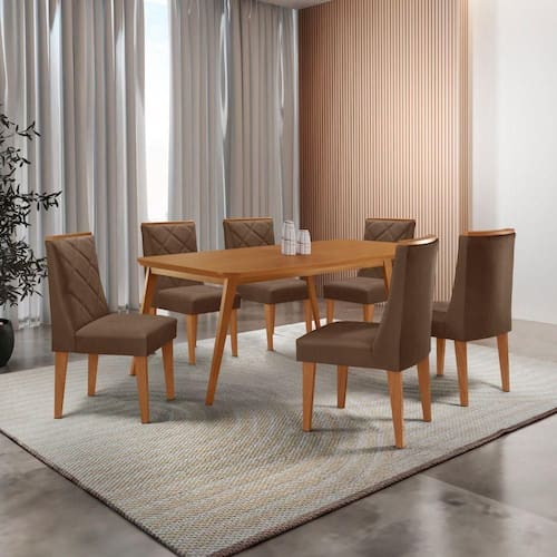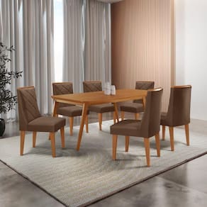 Mesa De Jantar Copper 180cm Tampo Com 6 Cadeiras Moderna Veludo Marrom/naturalle/naturalle Conjunto Sala de Jantar Mesa Copper e Cadeira Isadora A Mesa Copper e uma peca que traz elegancia e sofisticacao para qualquer ambiente. Sua base em madeira oferece uma estrutura resistente e duravel, enquanto o tampo em MDF e canto copo garante um visual refinado. Com design sofisticado e estrutura solida, ela complementa o ambiente com um toque natural e acolhedor.