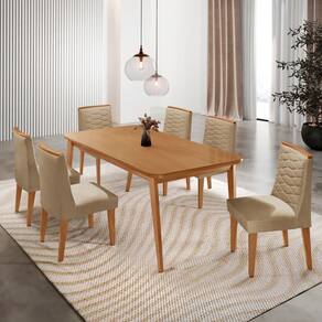 Mesa de Jantar Copper 180cm Tampo MDF com 6 Cadeiras Eloise Moderna Mobília - Bege Claro