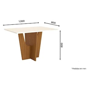 Mesa de Jantar Danielly 120 cm Tampo Reto com Vidro Nature Off White Henn