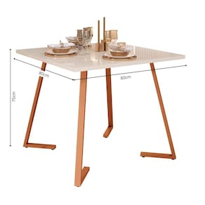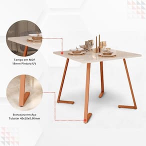 Características: - Medidas: 80 cm (largura) x 80 cm (profundidade) x 74cm (altura); - Tubo pés 40x20x0,90; - Sapata Regulável; - Ponteiras polietilenos; - Pintura eletrostática; - Pintura UV; - Borda nos 4 lados; - Capacidade: 4 lugares; - Estilo: Industrial; - Tampo resistente e fácil de limpar; - Estrutura em aço pintado, com alta durabilidade; - Ideal para ambientes compactos e modernos.